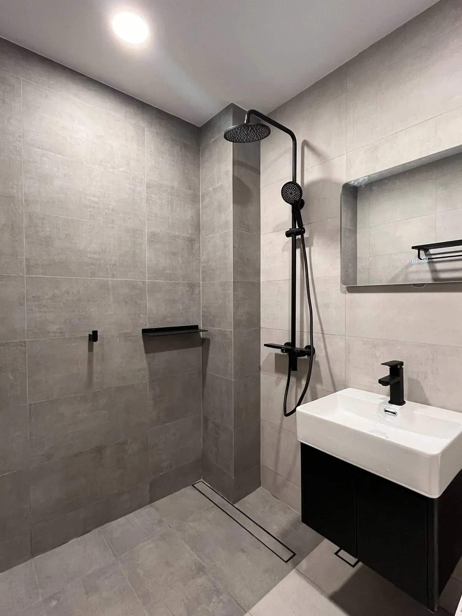 ✔️浴室全間防水施作至頂、角偶處黏貼抗裂纖維網