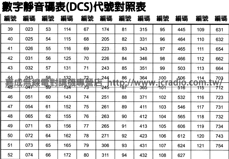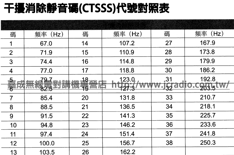 .台灣FRS免執照無線電頻率表與CTCSS DCS代碼對照表