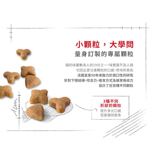 成分:脫水禽肉蛋白、米、動物脂肪、玉米、植物分離蛋白*、脫水豬肉蛋白、小麥粉、小麥、水解動物蛋白、玉米麩質、酵母菌、甜菜漿、礦物質、魚油、植物纖維、大豆油、果寡糖