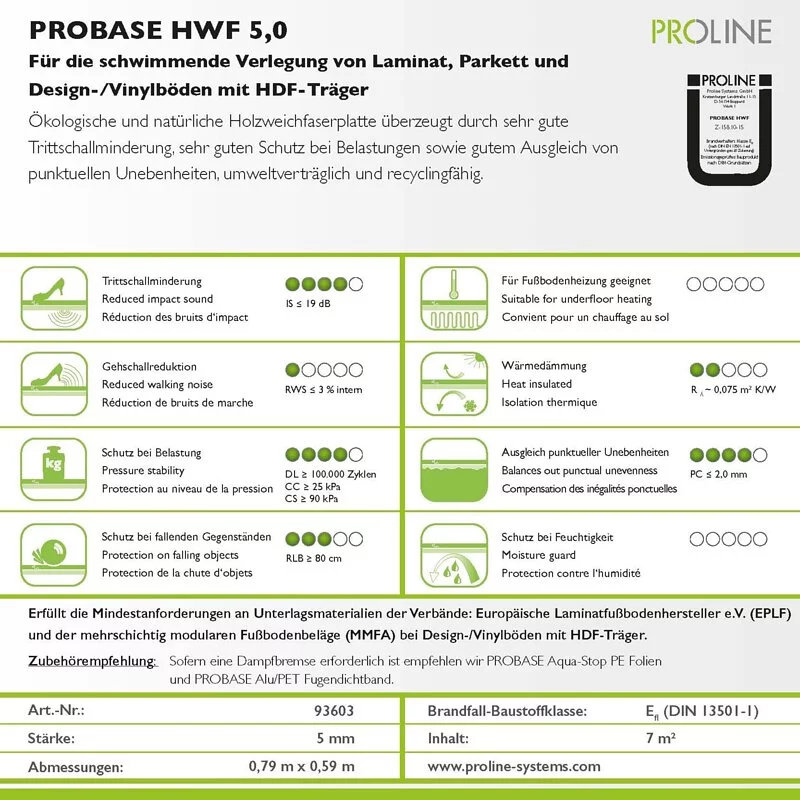 德國PROLINE PROBASE HWF 5,0 - 5mm木質纖維隔音墊