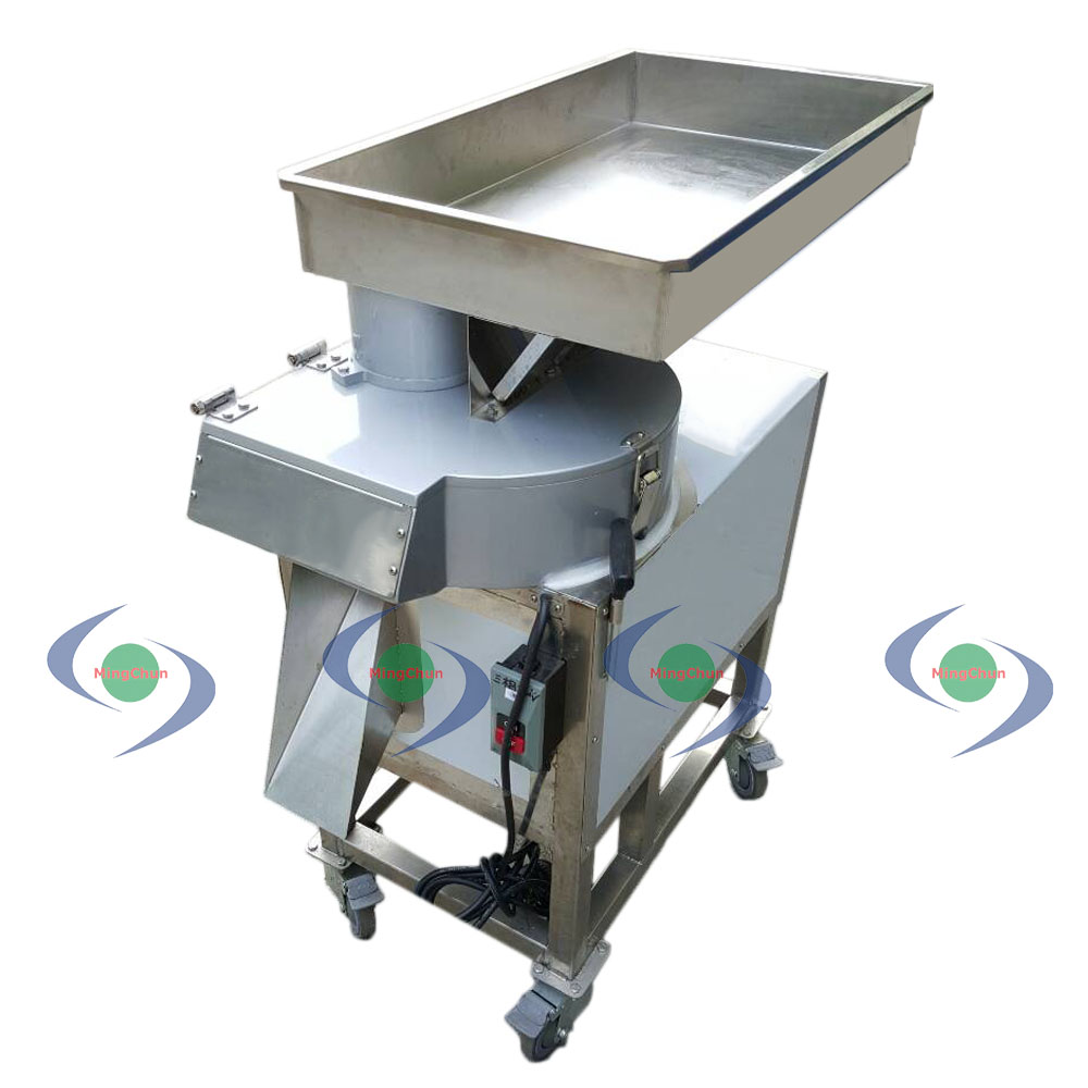 切丁機外觀設計美觀,入料口可特制多尺寸,運用在加割切大規格切角切塊切丁。切刀盤平面設計,穩固球根狀的食材切割更完美。