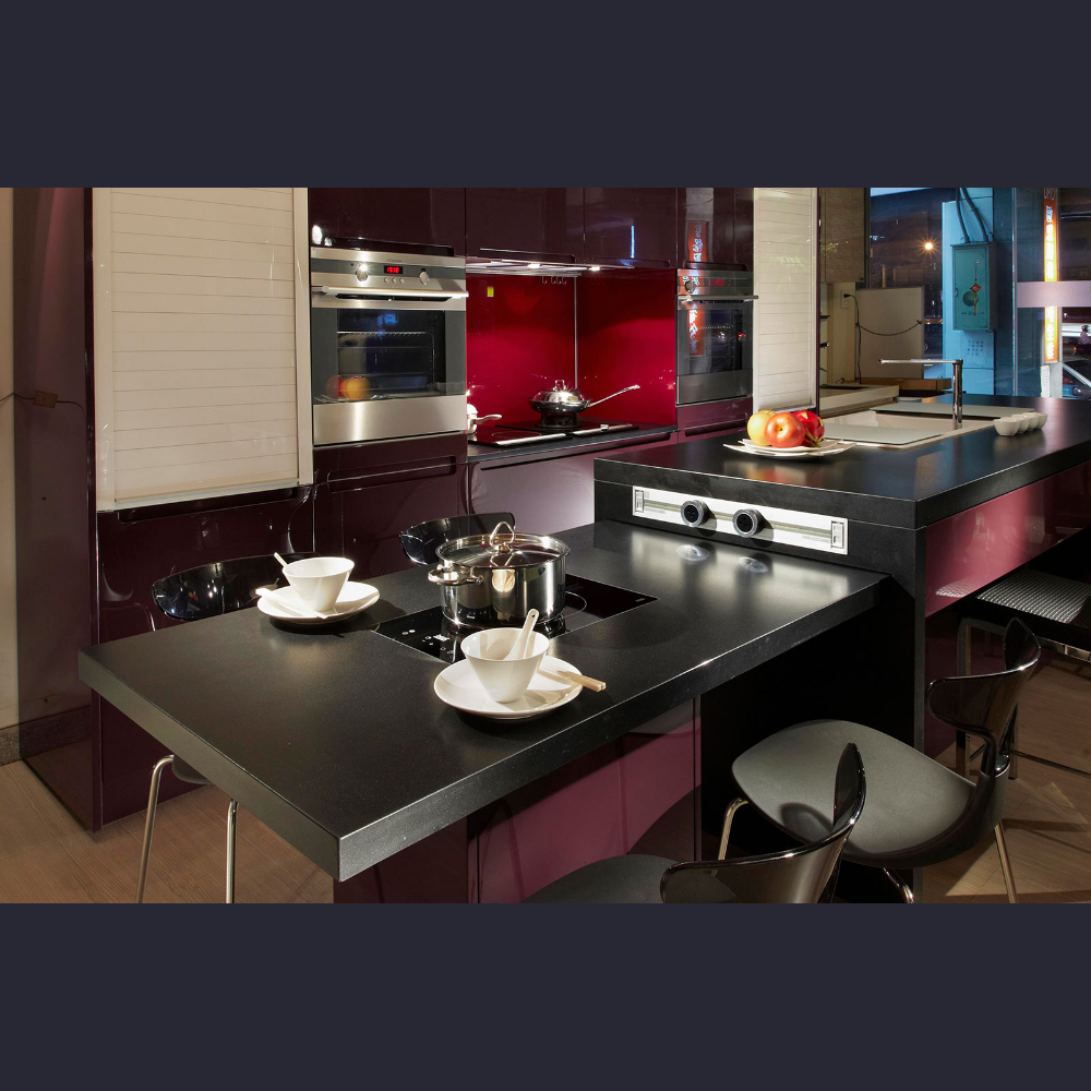 鋼烤門板(造型) 、 義大利石英石 。