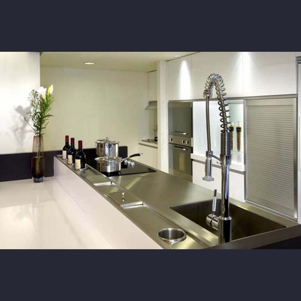 美蕊板門板 、 不銹鋼加人造石 。
