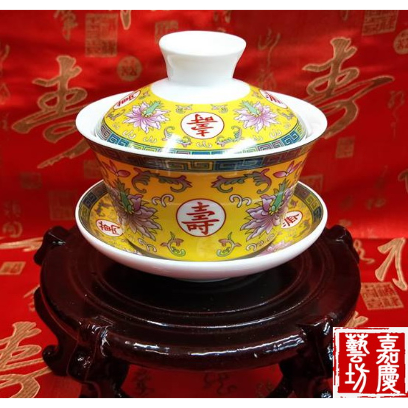 【嘉慶 黃色 萬壽無疆 蓋杯】