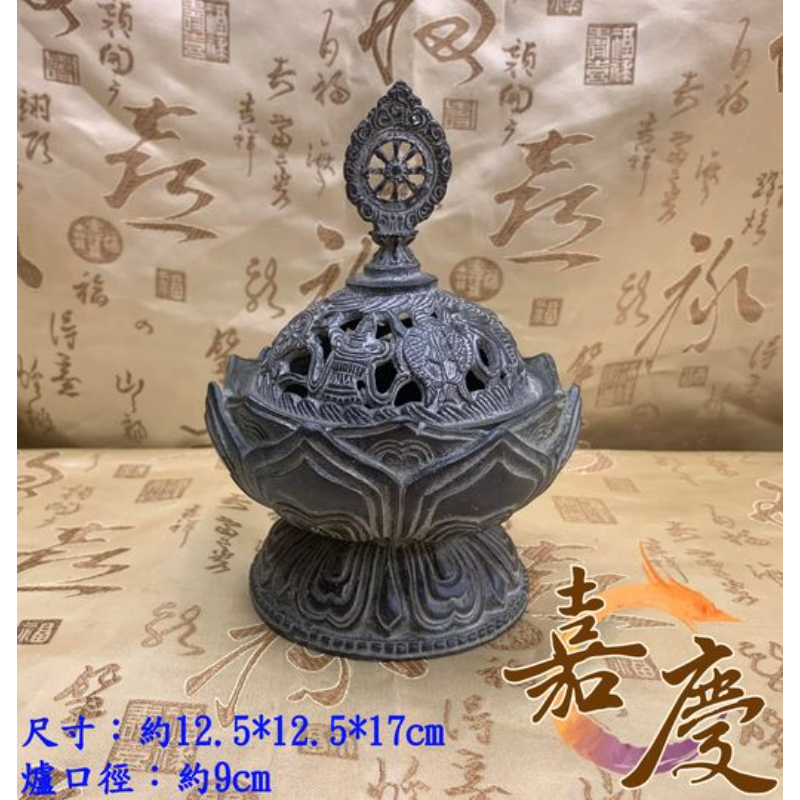 精緻銅爐 八吉祥圖騰環繞爐身