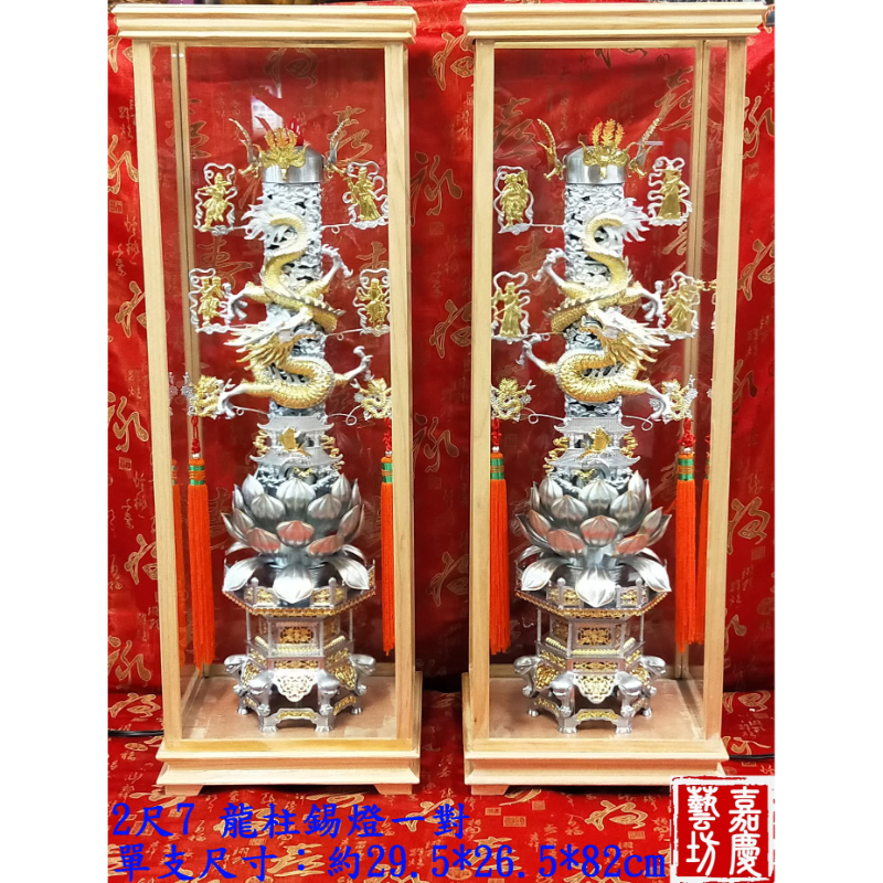 【嘉慶 2尺7 龍柱錫燈1對】