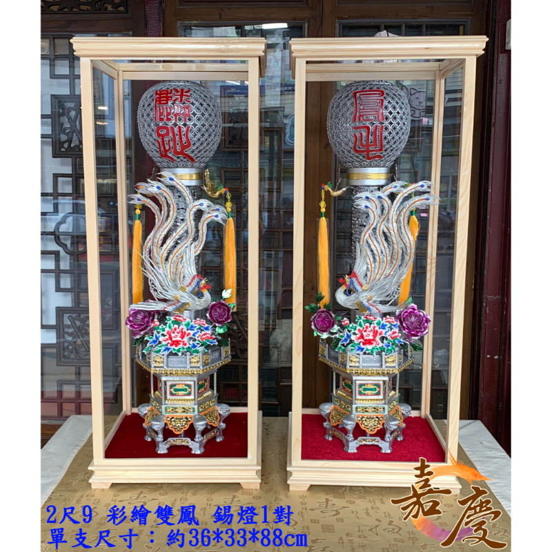 【嘉慶 2尺9 彩繪雙鳳 錫燈1對】