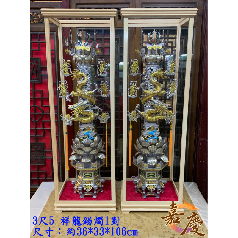 【嘉慶 3尺5 祥龍錫燭1對】