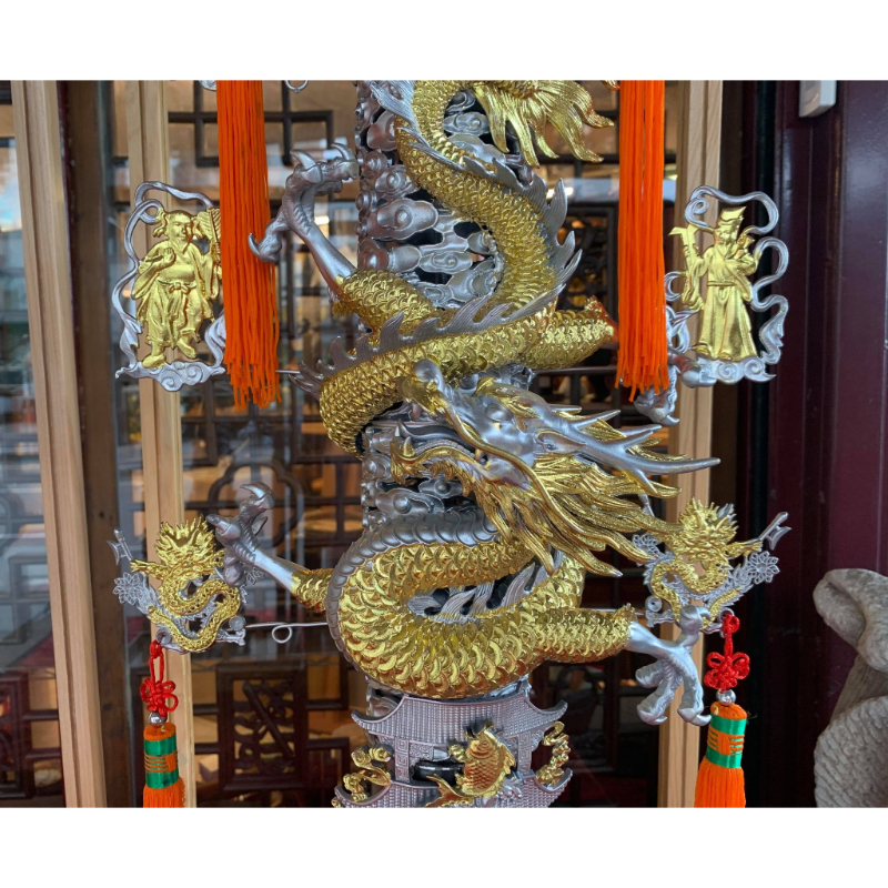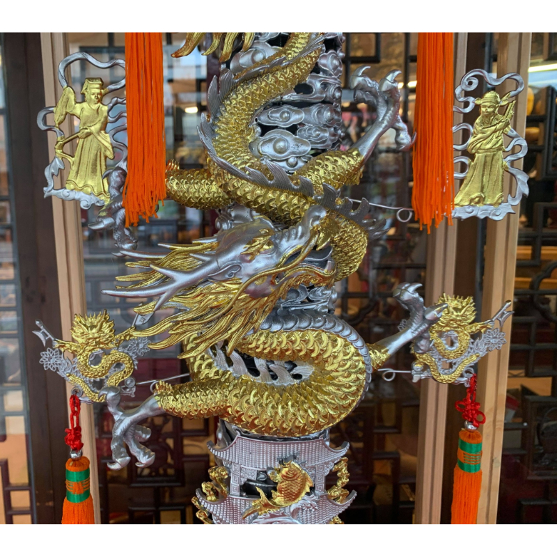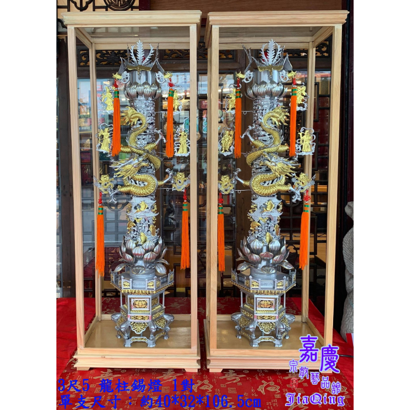 【嘉慶 3尺5 龍柱錫燈1對】