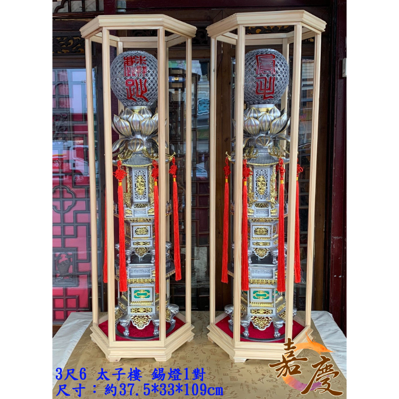 【嘉慶 3尺6 太子樓 錫燈1對】