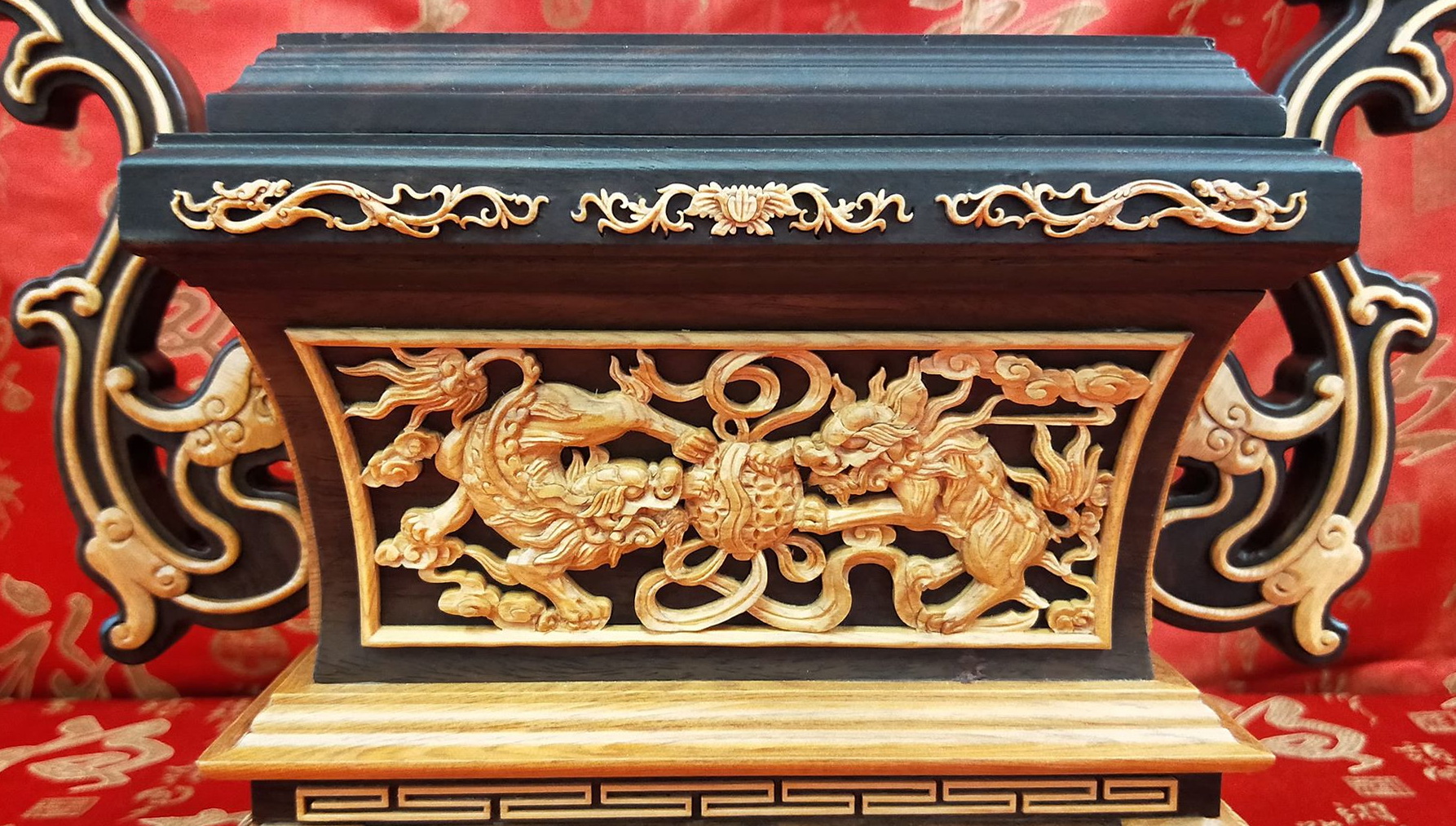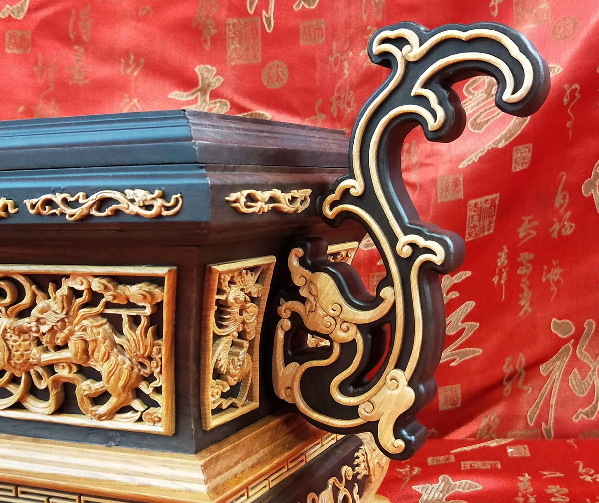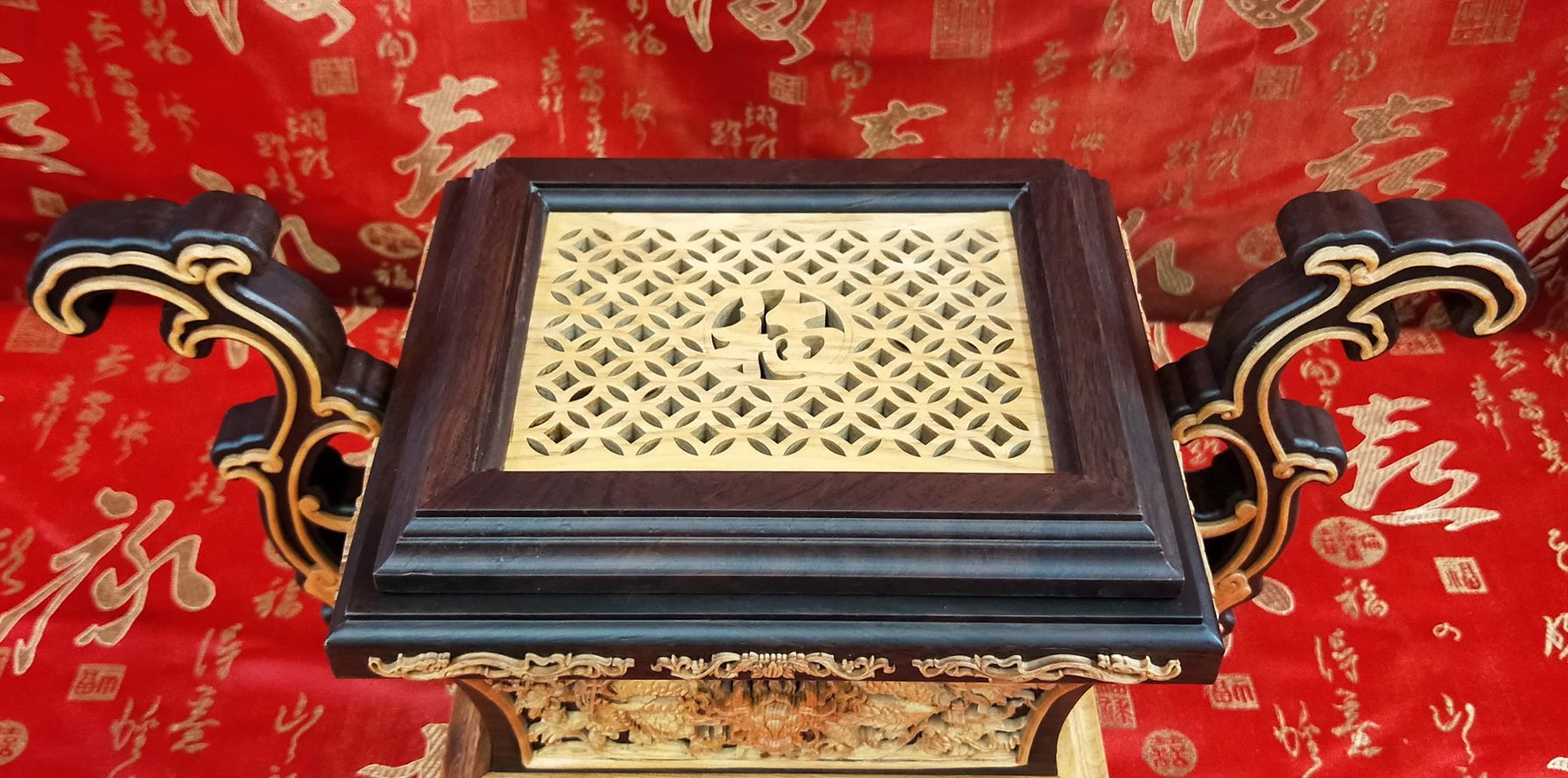 多用於富有人家的桌椅、床頭及廟宇神明桌