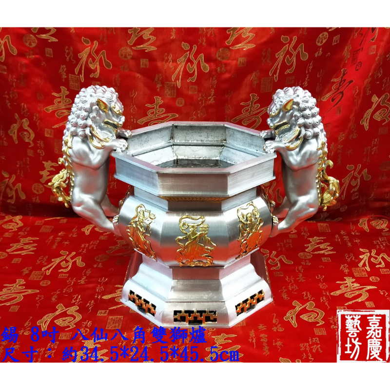 【錫 8吋 八仙八角雙獅爐】