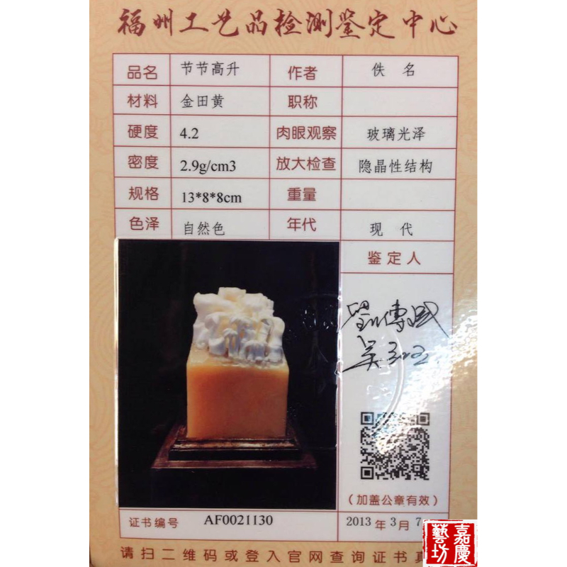 其硬度比玉石低,但比田黃高