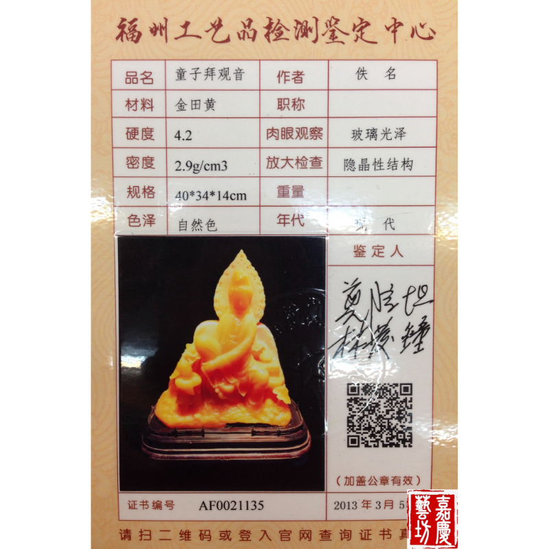 【嘉慶 金田黃 童子拜觀音】
