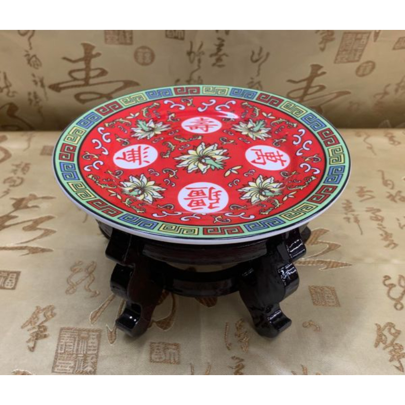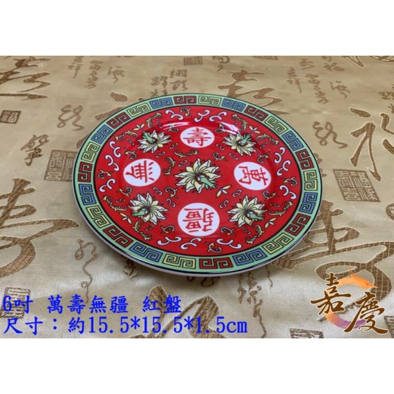 【嘉慶監製 萬壽無疆 6吋 紅盤 點心盤】