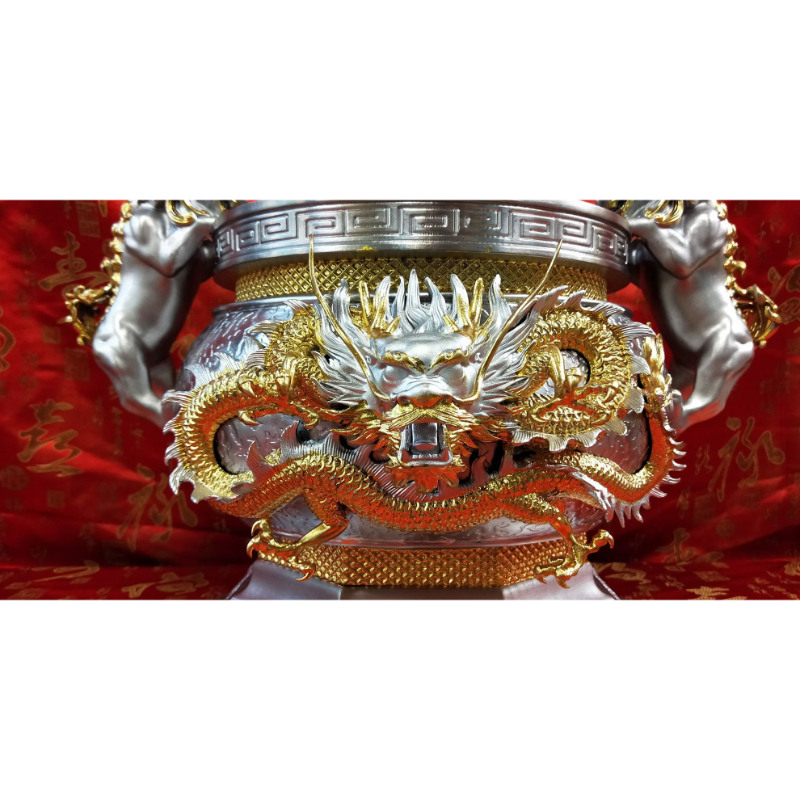 【錫 8吋8 雙獅耳蟠龍圓爐】