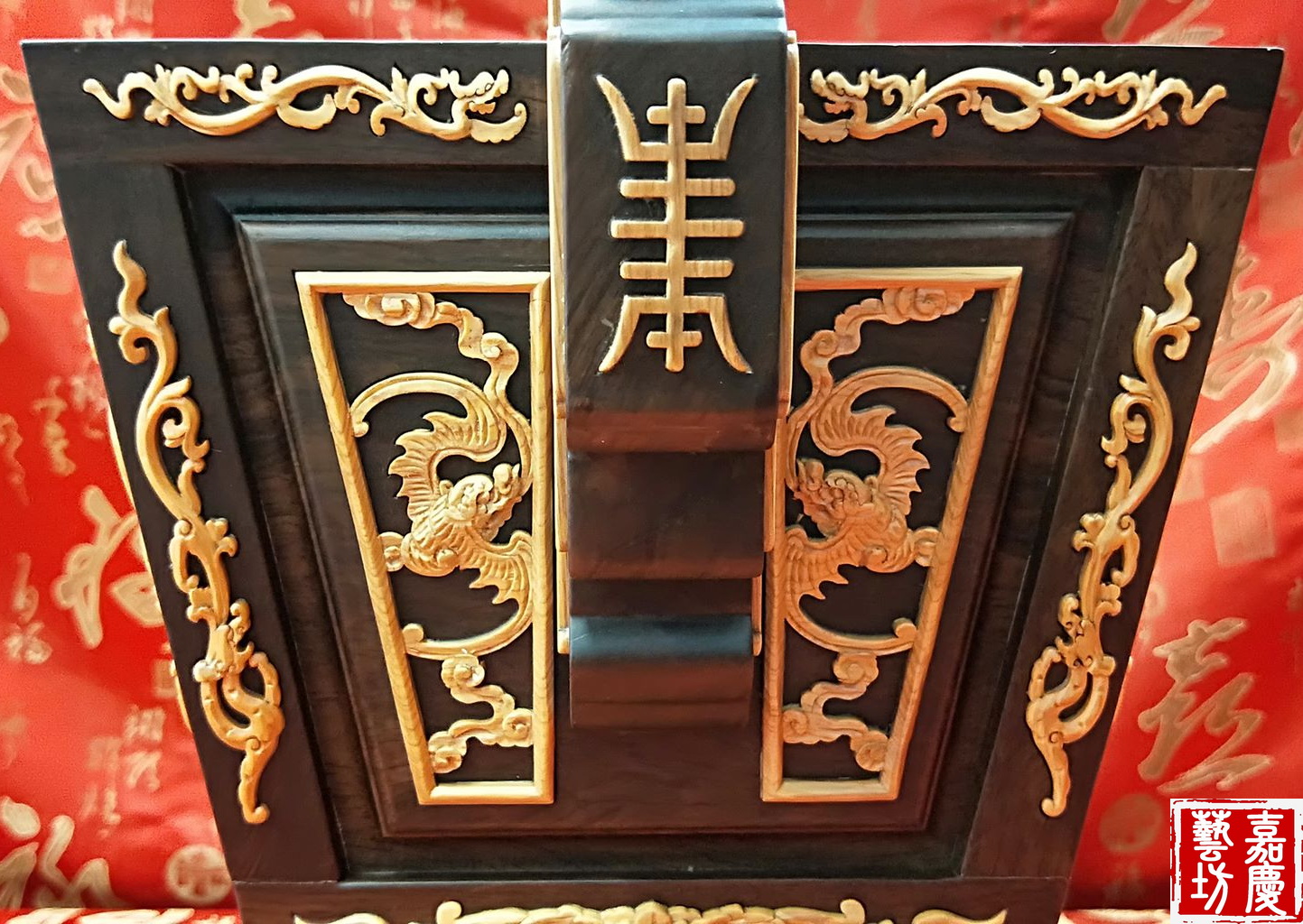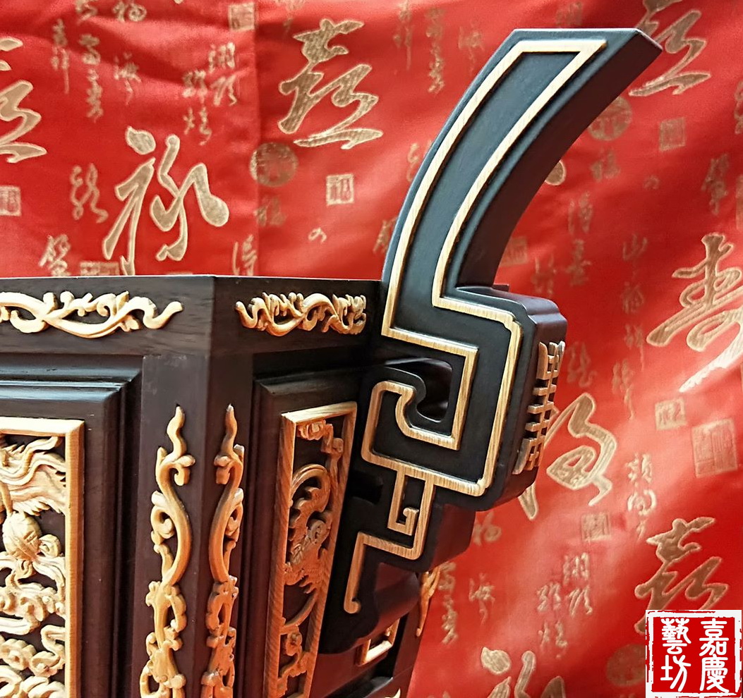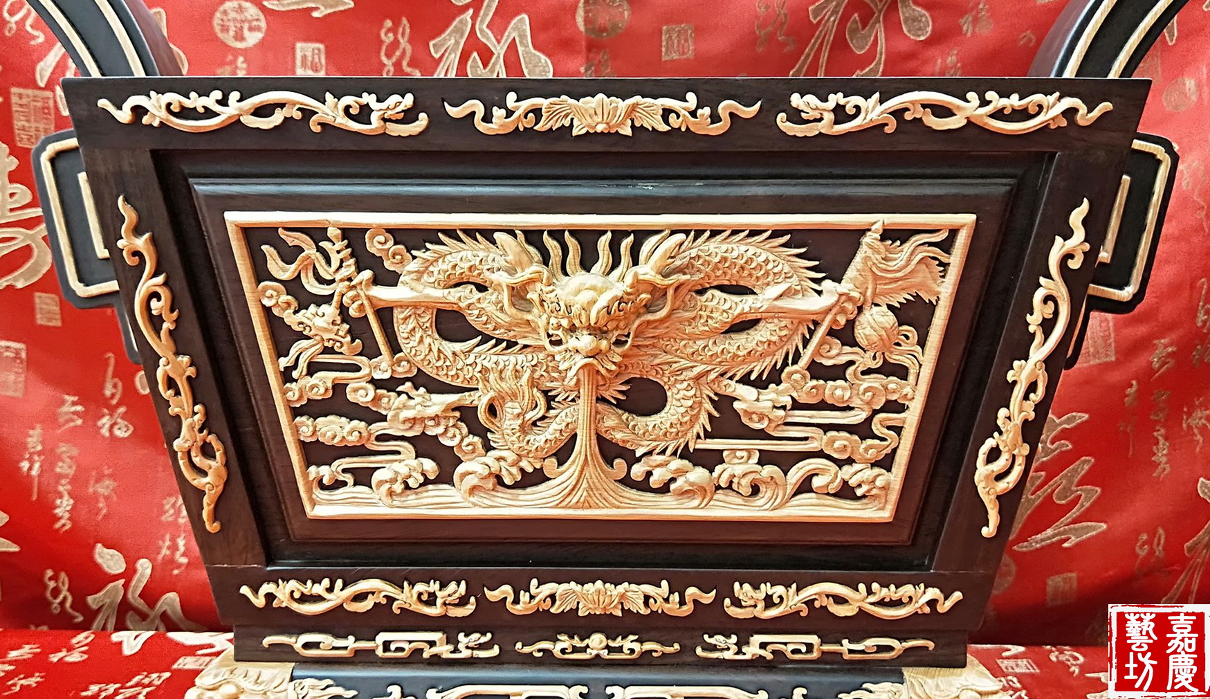 雕刻正面龍 背面博古