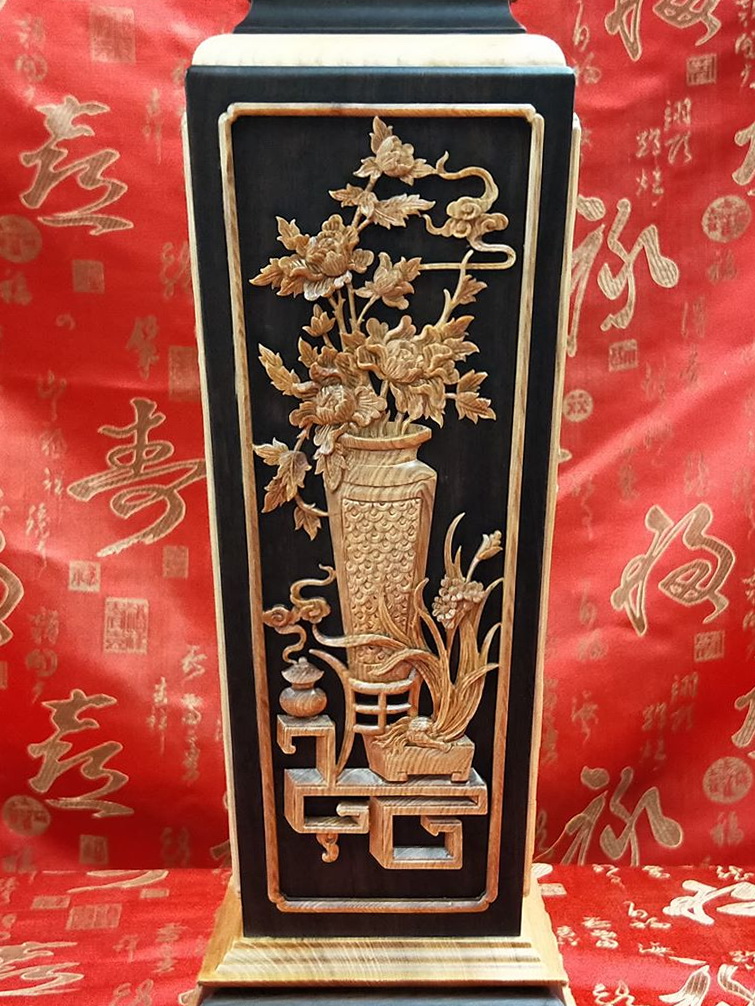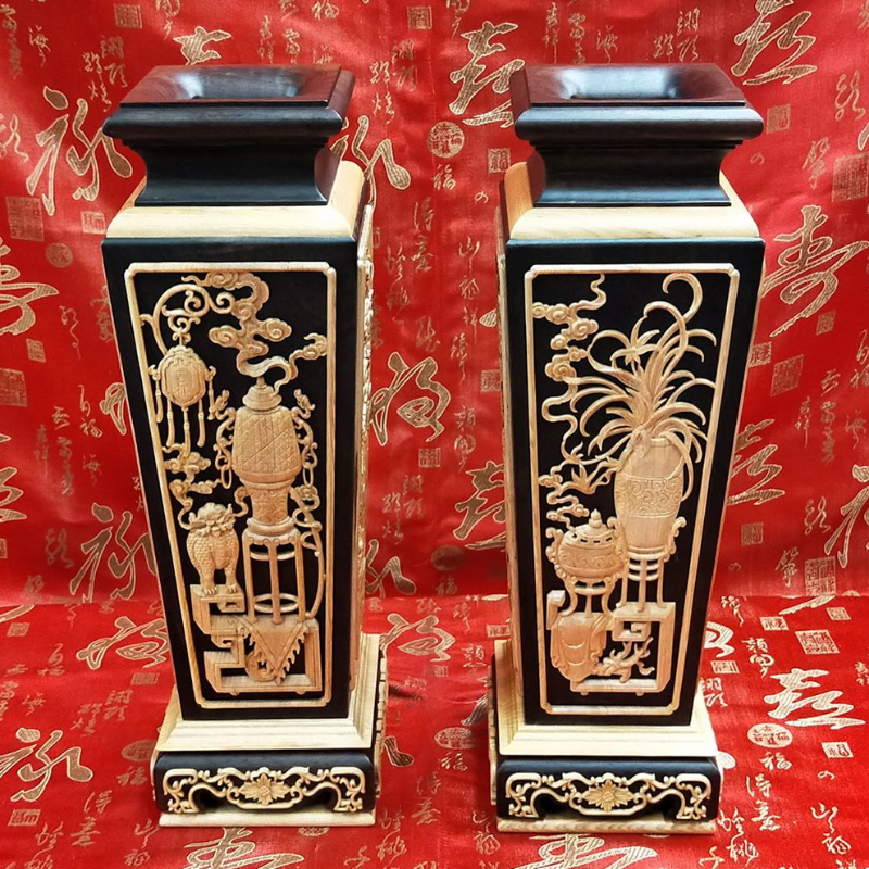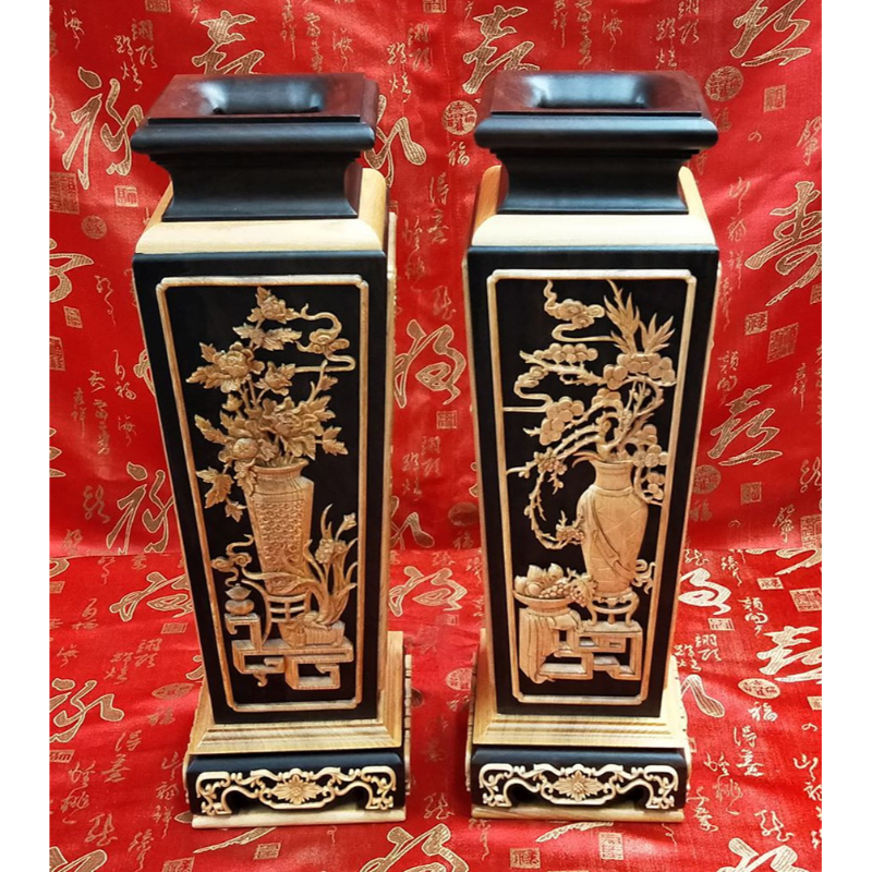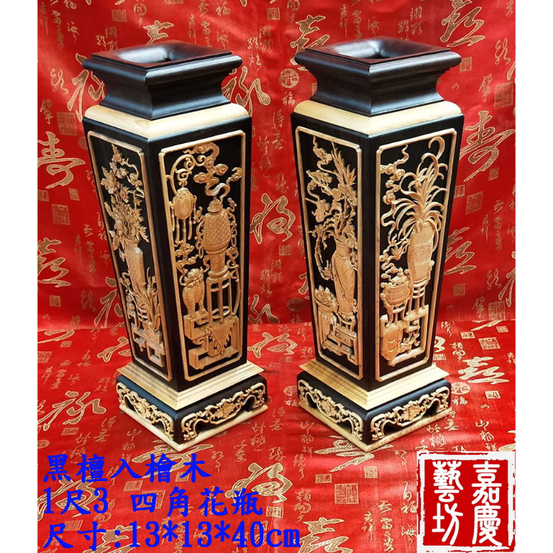 【黑檀入檜木 1尺3 四角花瓶1對】