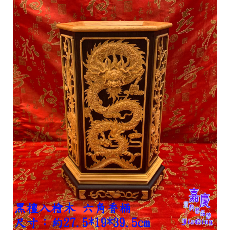 【黑檀入檜木 六角香桶】
