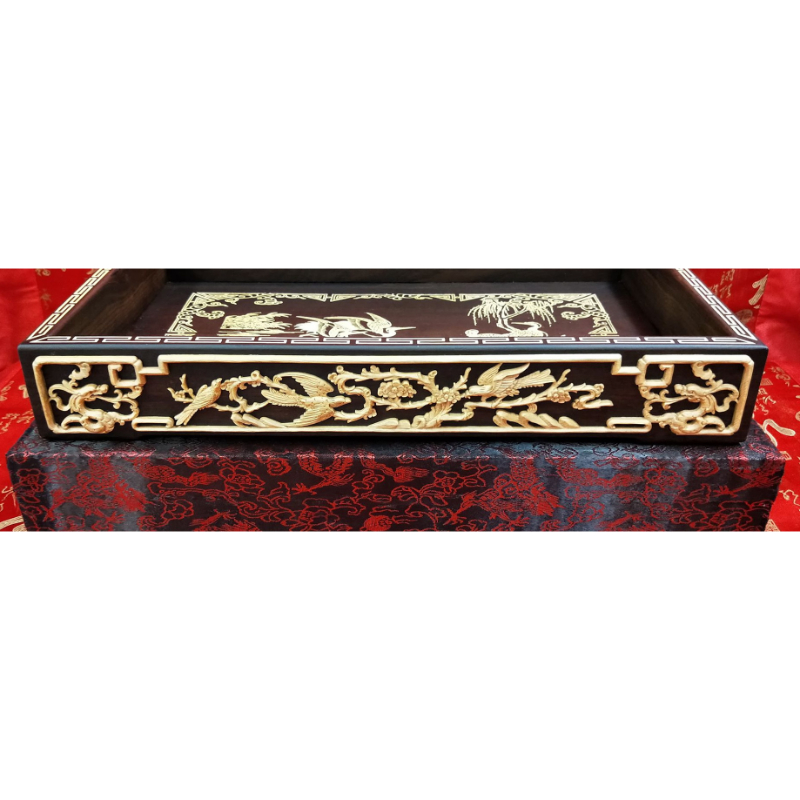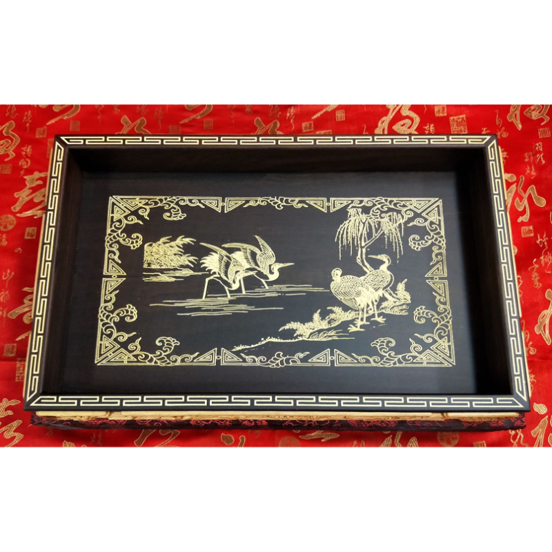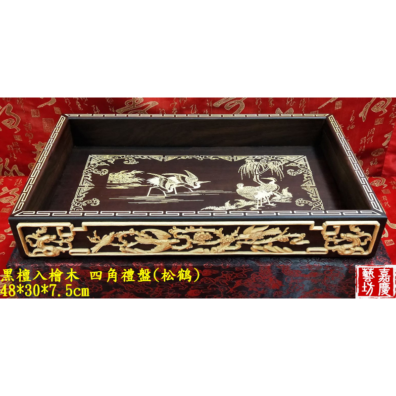 【黑檀入檜木 四角禮盤(松鶴)】