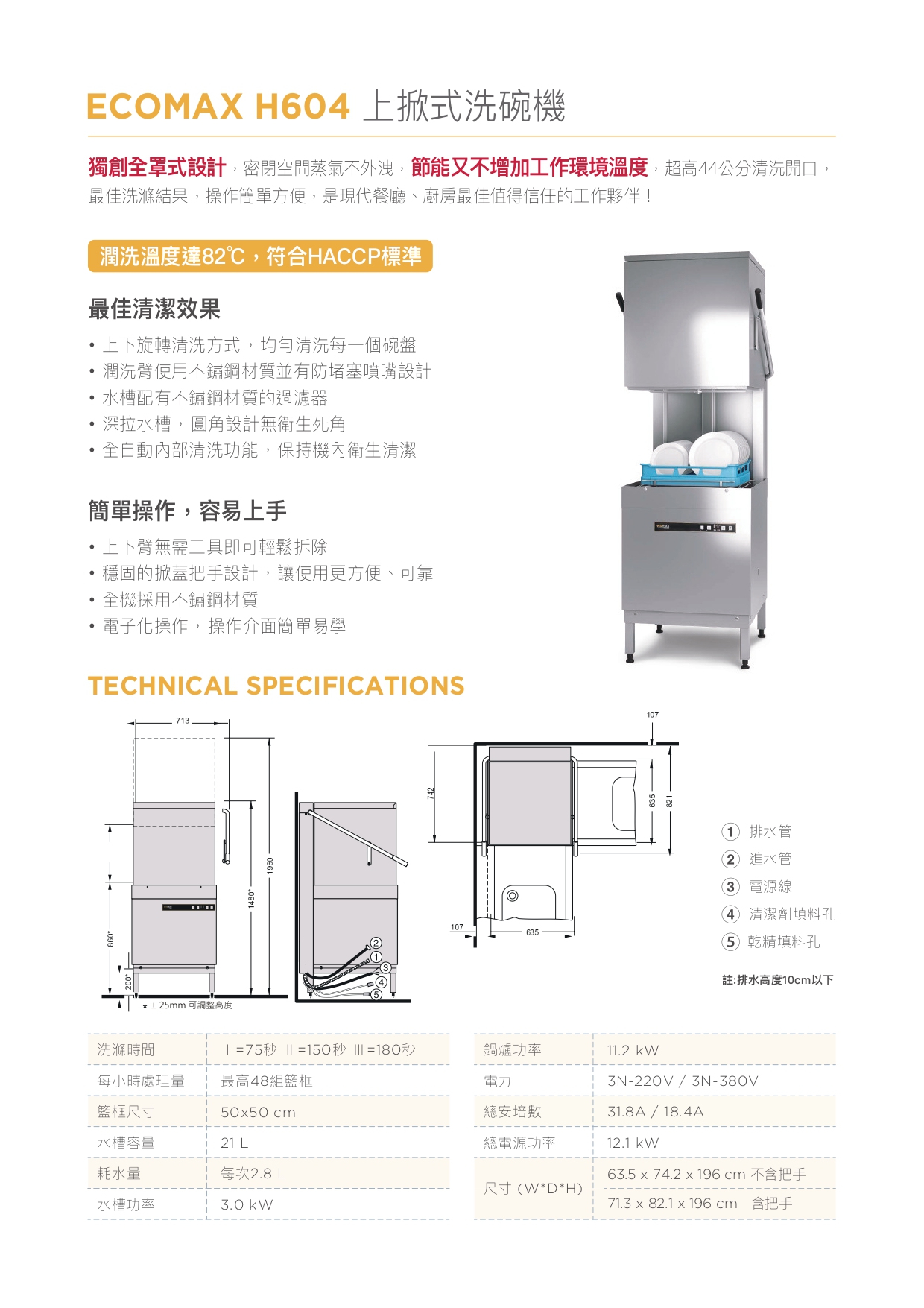 ECOMAX H604 上掀式洗碗機
