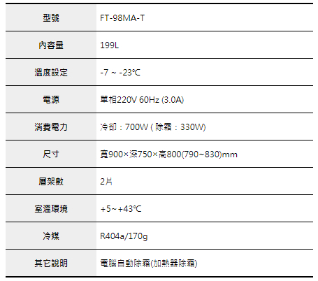溫度:-7℃~-23℃