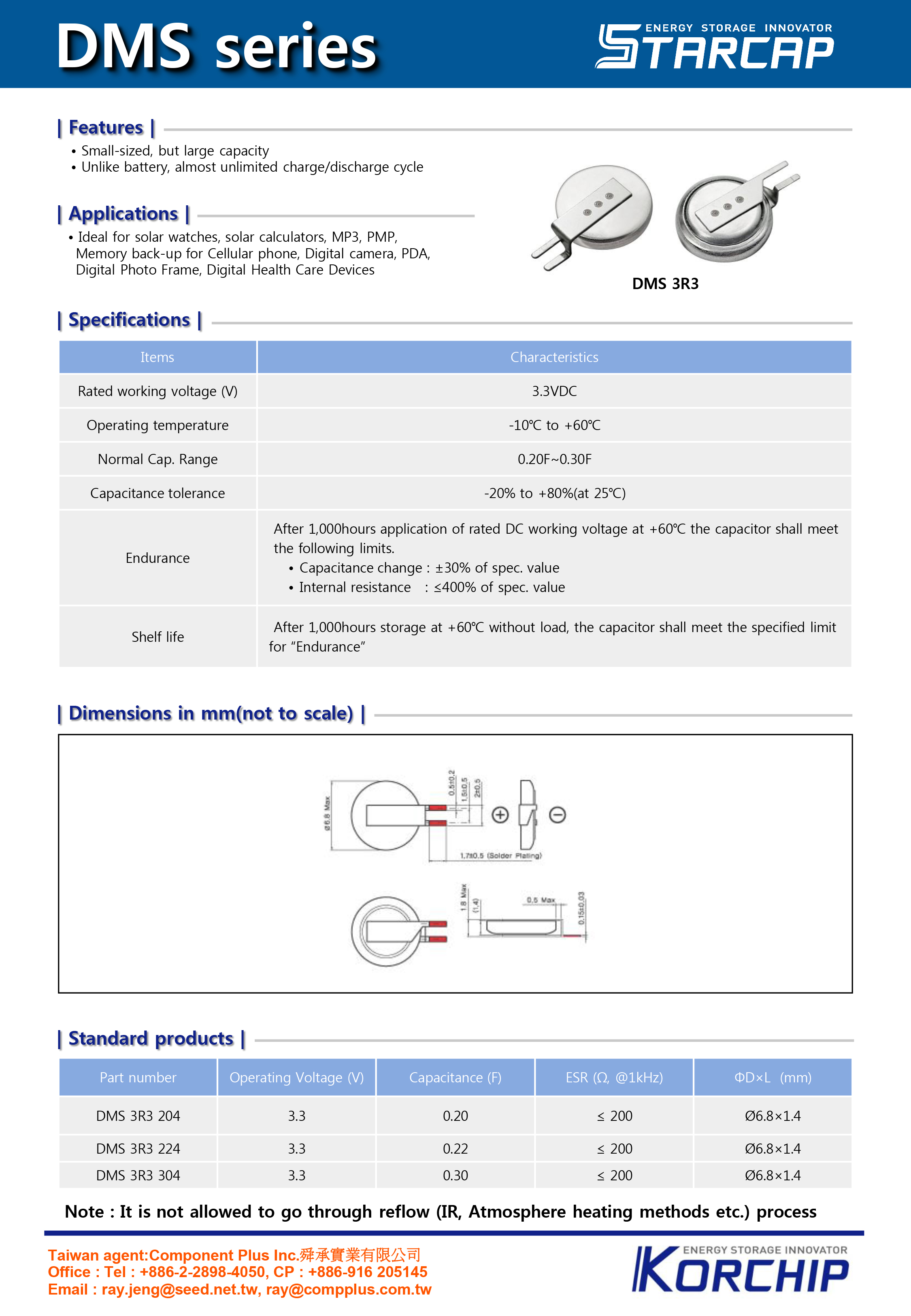 -DMS Series Ø6.8x1.4mm 0.2 & 0.22 & 0.3F/3.3V