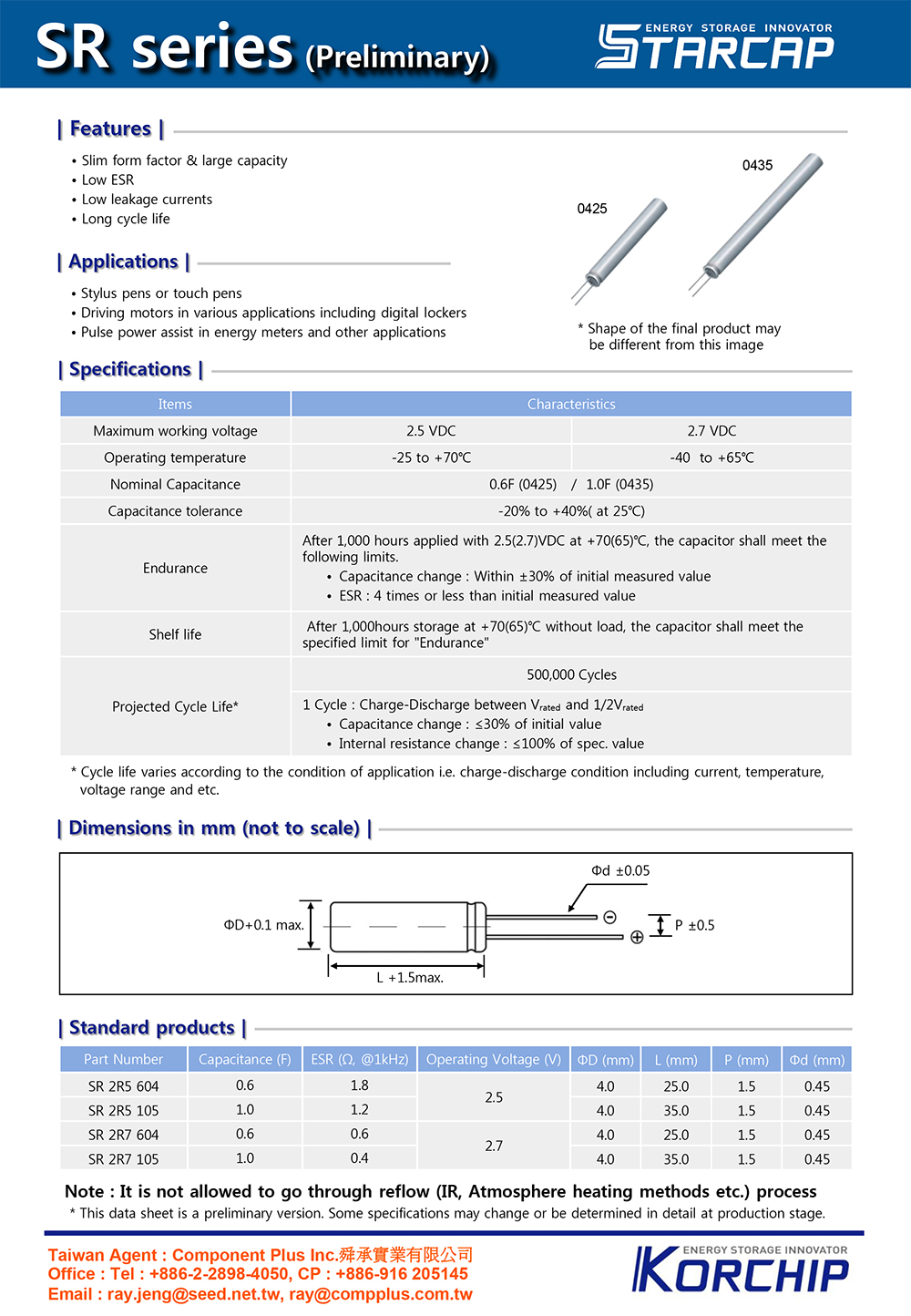 Ø4x25 & 35mm 0.6 & 1 & 2.7V(-40~65°C)