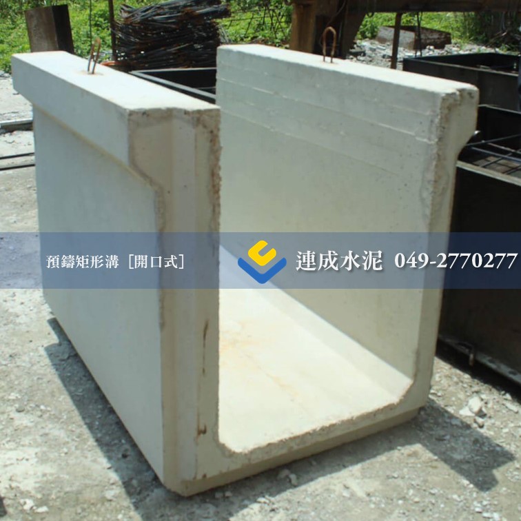 ── 矩形排水溝可搭配預鑄水溝蓋或鍍鋅蓋,亦有直壁式矩形排水溝和U型溝,