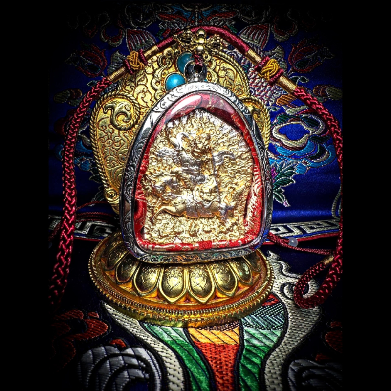 此尊法相特別殊勝處為是由桑耶寺白哈爾王府壁畫之紫瑪護法像為開模製作更加特別殊勝!