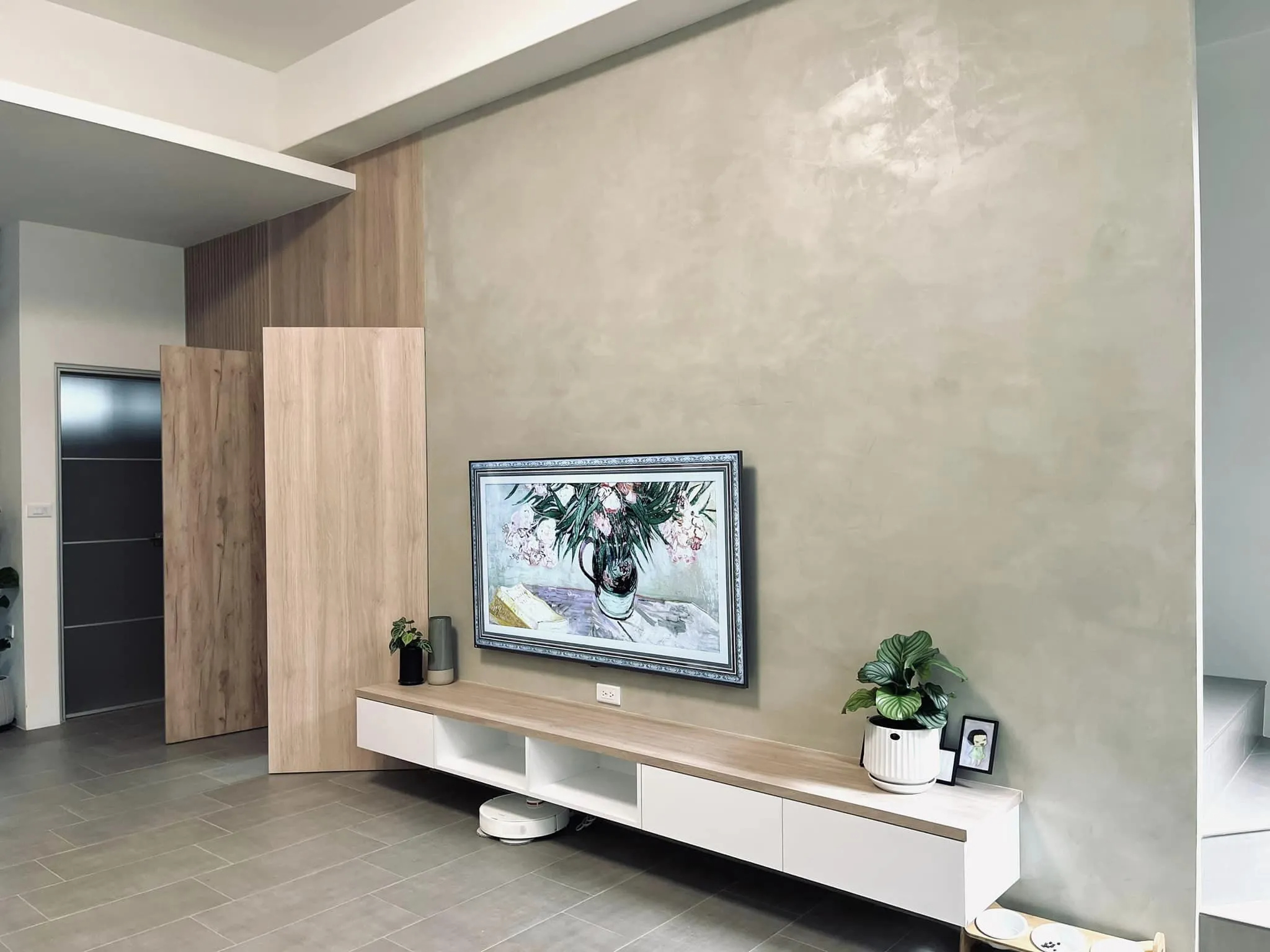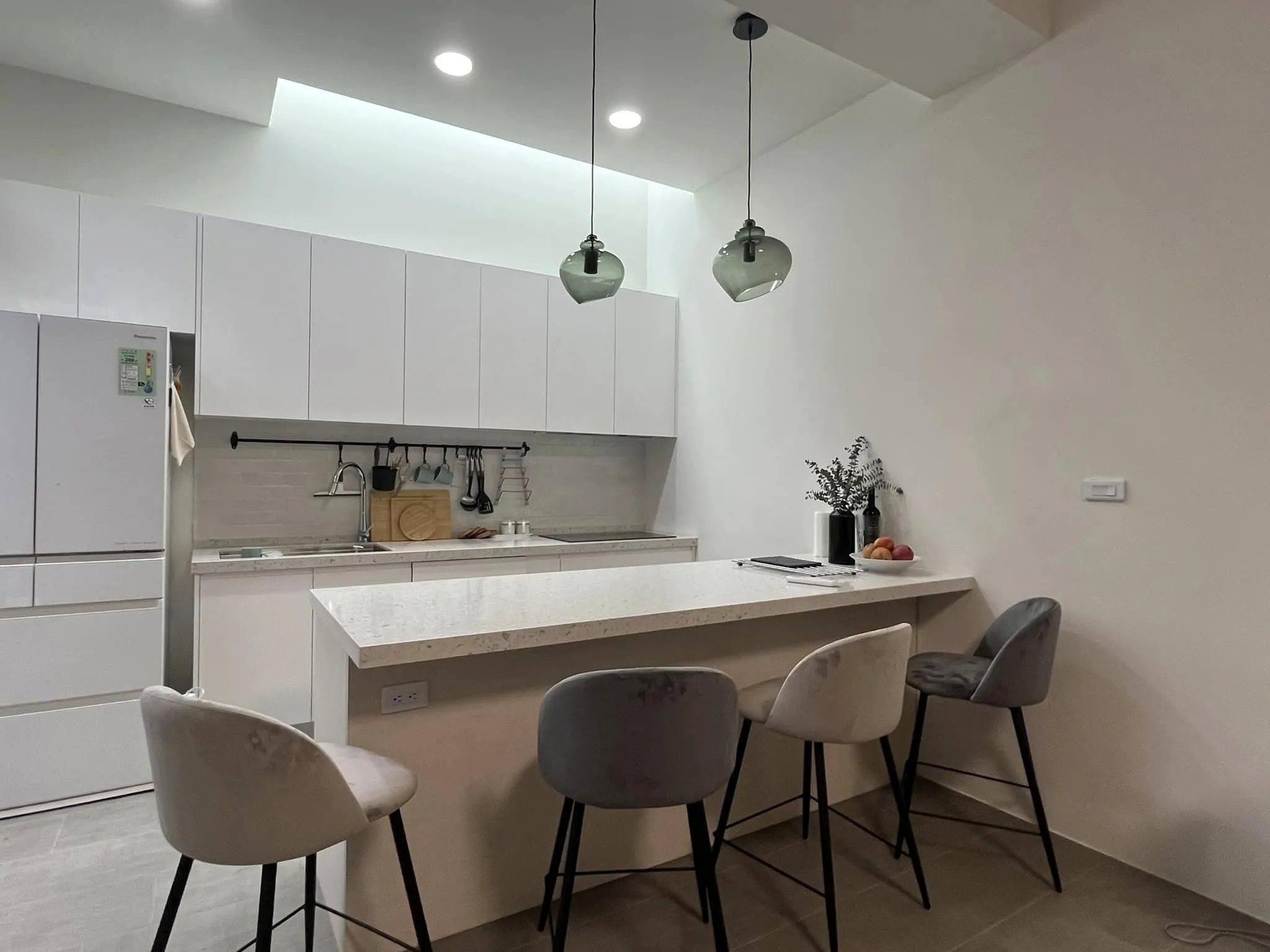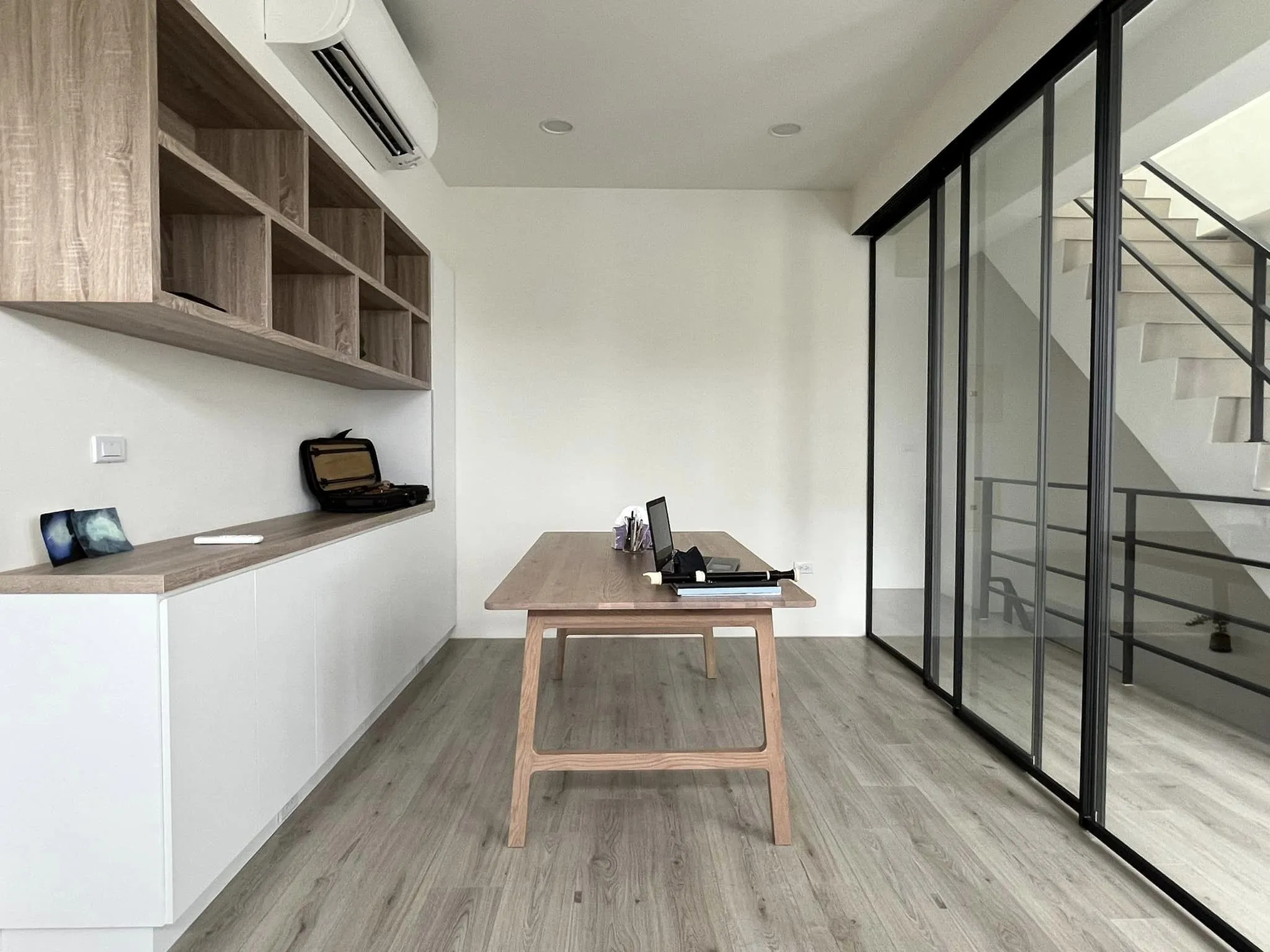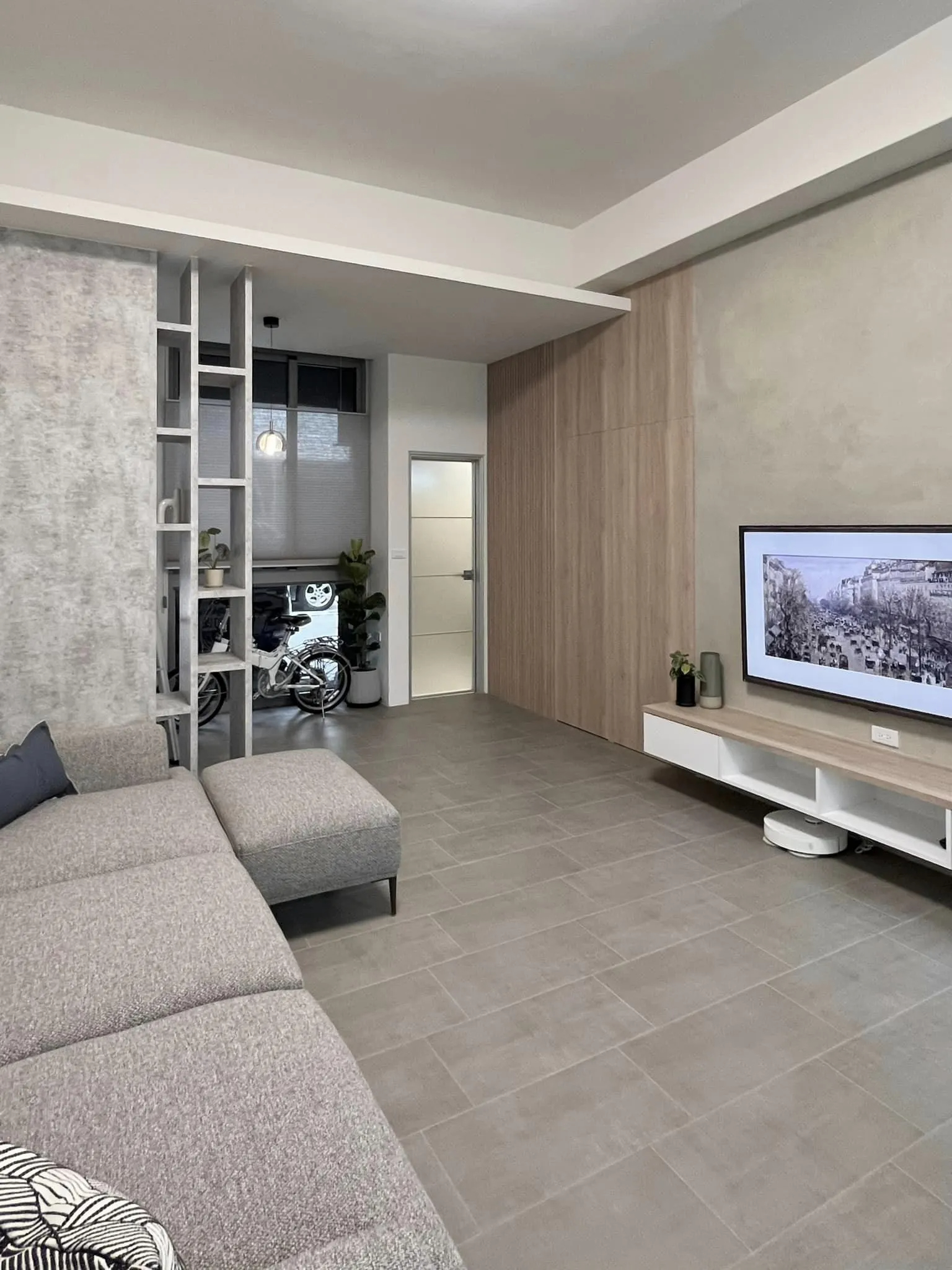 屋主夫妻經由朋友介紹,委託我們規劃施工新家的裝潢,本案的特點是有很棒的採光天井,以白色作為家中基底,搭配上溫潤的木紋和淺灰,最後屋主一家還親自參與了房間油漆跳色,也讓空間增添了清爽又柔和的氛圍。