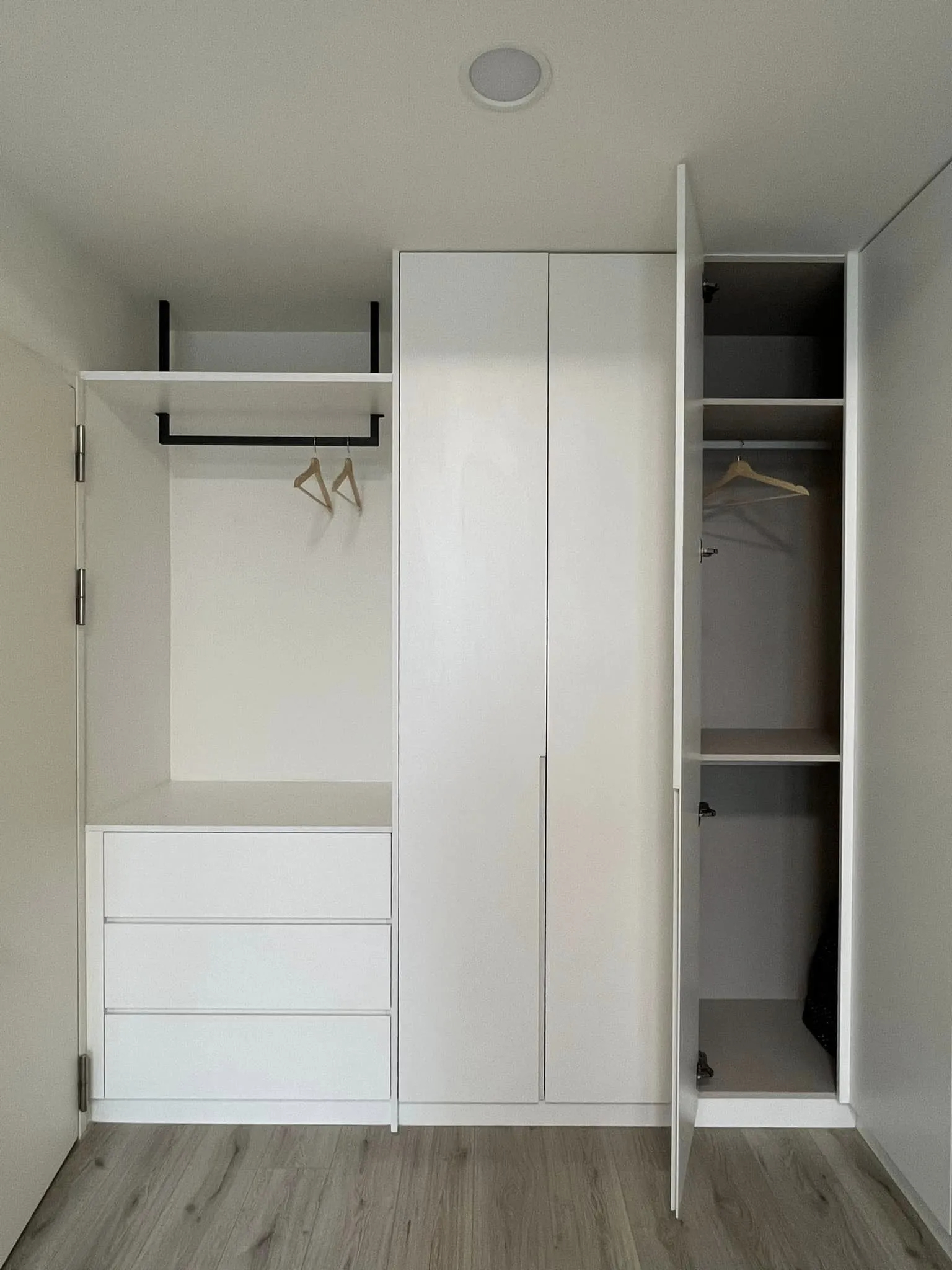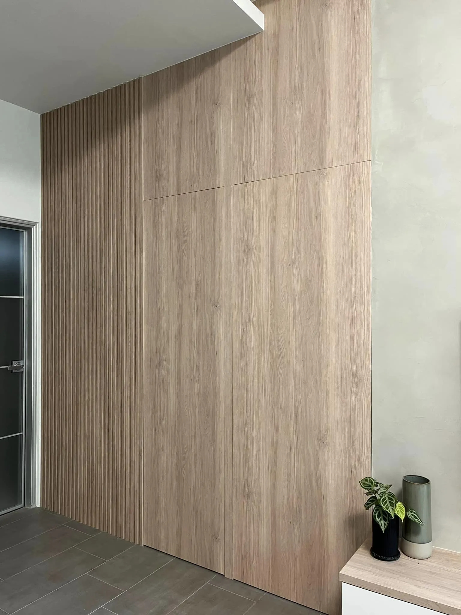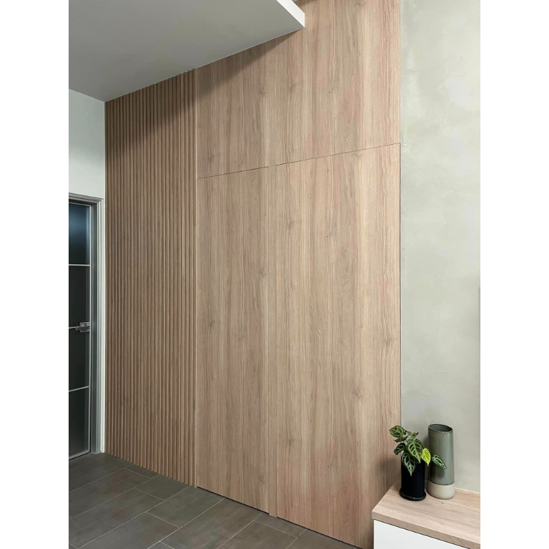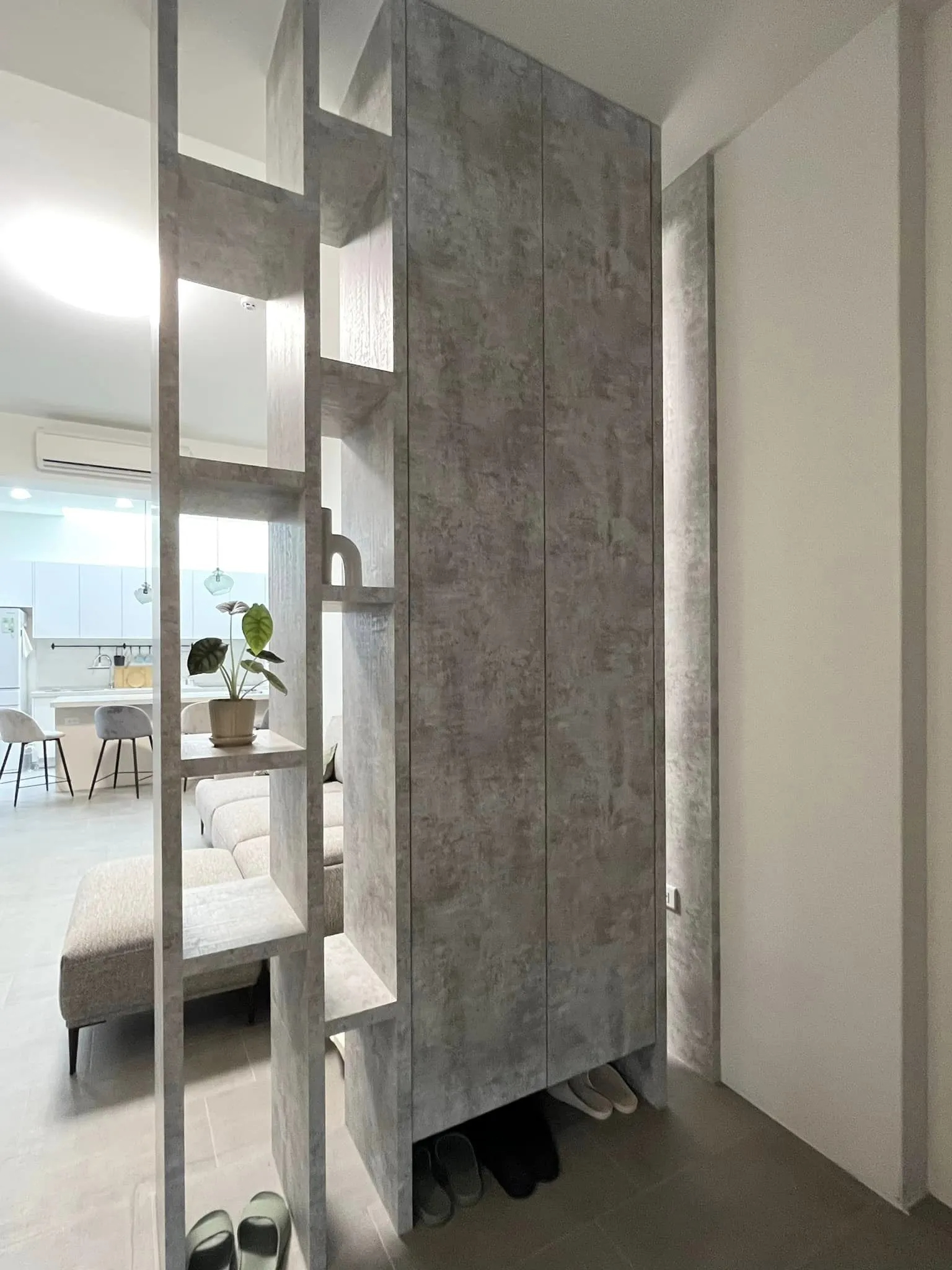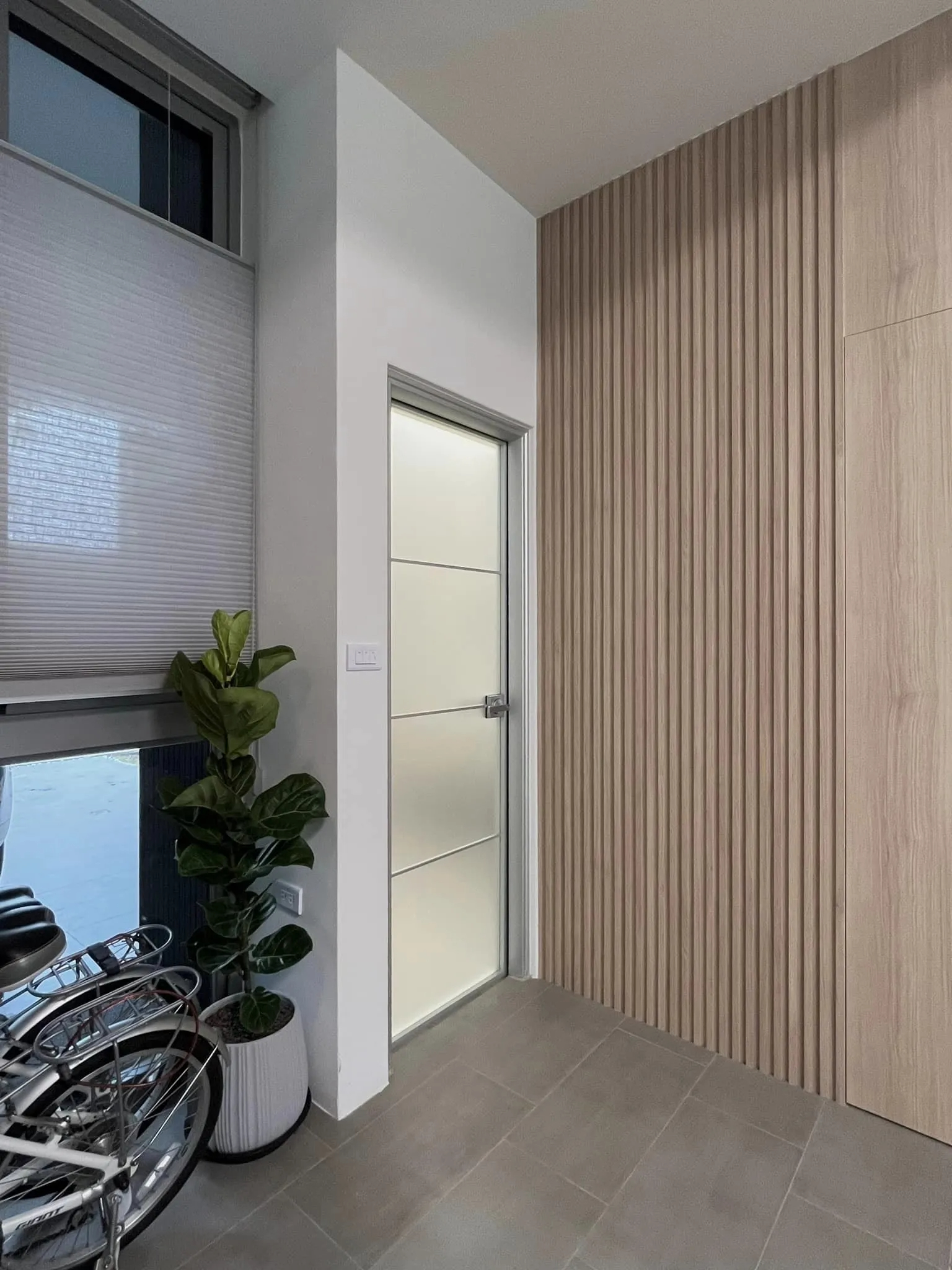 屋主夫妻經由朋友介紹,委託我們規劃施工新家的裝潢,本案的特點是有很棒的採光天井,以白色作為家中基底,搭配上溫潤的木紋和淺灰,最後屋主一家還親自參與了房間油漆跳色,也讓空間增添了清爽又柔和的氛圍。