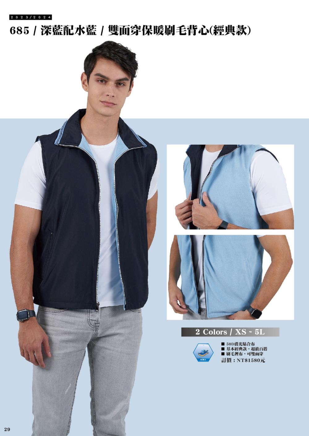 685經典雙面穿刷毛保暖背心