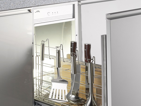 • 刀砧籃架採用不鏽鋼材質,不需使用任何工具即可輕易取出清洗,不必擔心內部髒污發臭的問題