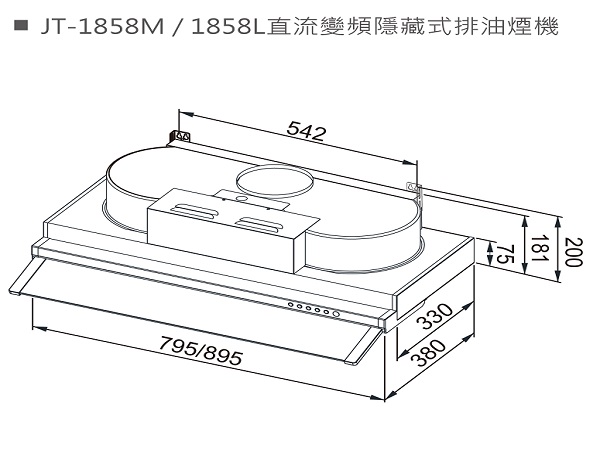 • 採用直流變頻馬達,在最低的能源消耗下達到最高的吸排能力,熱氣油味不留存,廚房永保清新,省電超節能