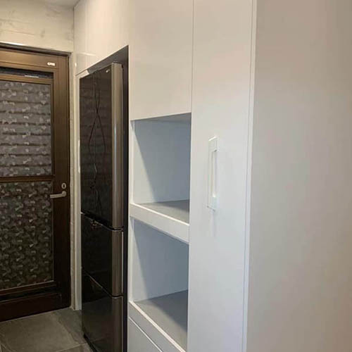 後排電器食品收納櫃將電器用品層層置放,而食品收納籃更有條理的將家中儲物品分門別類一目了然。