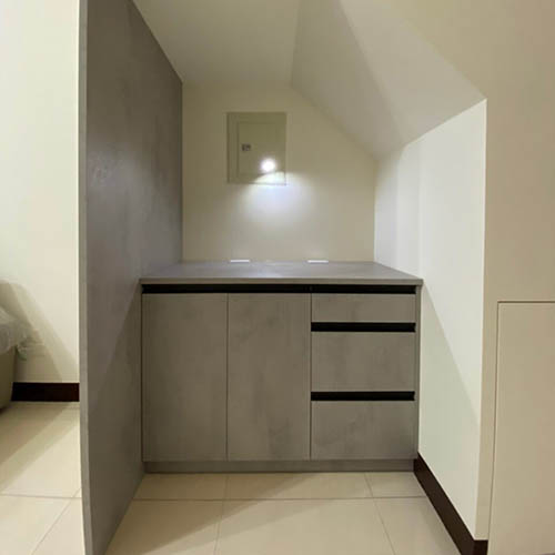 奧地利賽諾森現在時尚色彩,具備優越的耐刮性能、抗紫外線穩定性佳耐黃變。簡約的廚房在雙色搭配之下色彩既和諧又好看盡顯低調奢華的氣息。