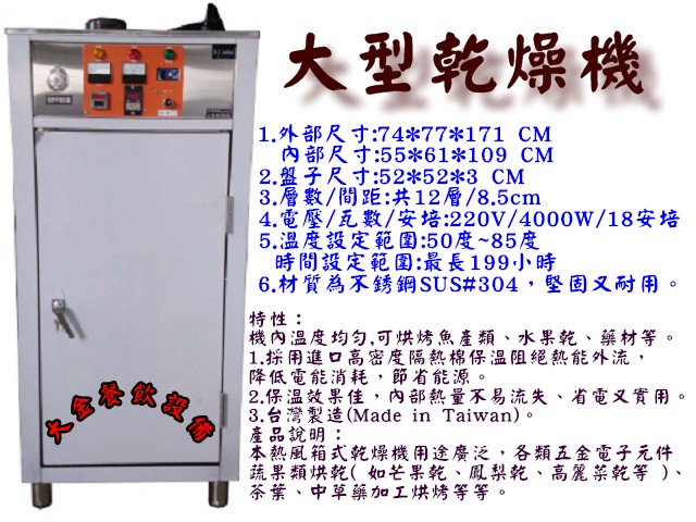 機內溫度均勻,可烘烤魚產類、水果乾、藥材等。